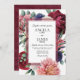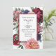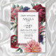 Este luxuoso convite mostra uma rica variedade de flores florescentes em tons suculentos de burgundy, rosa-pincel e marinho misturados com um toque de verde. Um quadro leve translúcido envolve o layout tipográfico moderno, definido em um fundo branco nítido. Uma bela escolha para as comemorações do outono ou do inverno e também para os casamentos de adegas glamourosos a qualquer momento do ano. Isto é parte de uma linda suite de casamento com muitas peças correspondentes.
