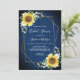 Estes convites de chá de panela apresentam um girassol floral de cor aquática e flores brancas design com um quadro geométrico dourado falso sobre um fundo de grãos de madeira azul marinho. Personalize-os com o seu próprio texto. Visite nossa loja para ver a gama de cheios de produtos correspondentes que você pode personalizar para o seu casamento.
