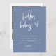 Este convite para chás de fraldas moderno apresenta uma fonte manuscrita elegante com uma combinação de cor azul e branca empoeirada. Seu simples design é o convite chá de fraldas perfeito para a mãe moderna. Adicione facilmente a sua própria fotografia à parte de trás para obter um toque pessoal único.