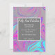 Um quadro de prata na moda e texto num convite de aniversário de mármore líquido, rosa, lacrimejante e azul.