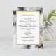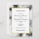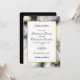 Convite de festa de aposentadoria com um padrão marmorizado elegante e moderno. Mármore branco, preto e cinza defumado com fitas finas de redemoinhos de dourado falso por todo o padrão. Uma moldura retangular com uma borda de folha de dourado falso sobreposta. Dentro há 2 divisores decorativos com o texto do seu evento entre eles.