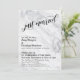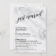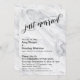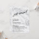 Este cartão distinto foi projetado para ajudá-lo a convidar amigos e familiares para a recepção de casamento ou festa que se realiza algum tempo depois da cerimônia de casamento. O fundo foi coberto com um padrão de mármore cinza e branco. Sobre essa superfície, usando uma fonte de texto moderna e com curvas, criei uma sobreposição gráfica de tipografia que diz "recém-casados" com extravagantes curvas e espirais. Esta tipografia foi combinada com uma fonte sem serifa, versátil e complementar para exibir seus detalhes pessoais. Use os campos de modelo fornecidos para atualizar o design. Se você quiser personalizar ainda mais, movendo quaisquer detalhes para outro lugar, alterando as fontes ou tamanhos, basta clicar no link fornecido e editar o design como desejar. Adicionei todas as camadas separadamente e elas estão desbloqueadas para lhe dar total controle sobre o design. //