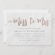 Um excelente à maneira de convidar seus convidados! Comemore noiva-à-estar com estes chás de panela chiques. Caracterizando um fundo de mármore branco. As palavras "senhorita à Sra." aparecem na parte superior em um roteiro cor-de-rosa da folha de ouro do falso com redemoinhos doces. Seus detalhes do chá são indicados com uma tipografia moderna. Este chá de panela convida é perfeito para celebrações formais.