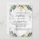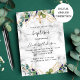 Impressão de pedra mármore como fundo decorado com verde de eucalipto e folhas de ouro. Personalize e o nome e a cerimônia da criança. Fundo: impressão de mármore.
