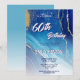 Convite de Aniversário de 60 anos Mármore Dourado Azul Brilho. Celebre um marco com estilo com este convite de aniversário surpresa glamoroso, apresentando sotaques de brilho dourado impressionantes, fundo marmorizado azul elegante. Perfeito para homenagear uma mulher fabulosa que está fazendo 60 anos, este convite define o tom para uma celebração inesquecível. Personalize todo o texto e imagens para combinar com os detalhes da sua festa e crie uma lembrança memorável.