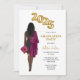 Mulher afro-americana 2024 Convite Festa de formatura. Festa de formatura Convidar retrato feminino desenhando vestido preto, boné de marrom e vestido, cabelo escuro longo. Classe de balões de ouro de 2024.