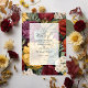 Maroon, amarelo-mostarda e convite para o casamento floral verde-oliva. Ideal para um casamento no jardim de verão.