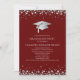This modern design features a graduation hat and confetti in silver on a background of maroon with white text.
