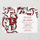 Este convite de festas temático de vôlei apresenta maro em cluster, cinzas e volichões brancos nas bordas esquerda e superior na frente e um cluster de solteiros que cobre o verso do convite - personalize os detalhes do partido na coordenação de cores em fundo branco - por katz_d_zynes