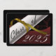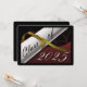 Cartão de graduação de marrom e ouro com diploma e ano de graduação. O fundo é preto, com letras douradas para os convites de festa de formatura.