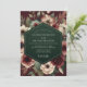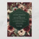A dramatic and opulent botanical design sets a deeply romantic tone. This artistic arrangement features lush maroon, blush, and cream anemones painted in a moody, chiaroscuro style. Delicate greenery is artfully placed against a rich, dark emerald background, creating a feeling of timeless, baroque elegance for your nuptials.