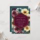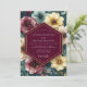 Evoke a sense of moody romance with this elegant and dramatic botanical design. A lush arrangement of painterly anemones and peonies in deep burgundy, teal, and pale yellow hues pop against a dark background. This artistic and opulent floral display is perfect for a sophisticated autumn or winter union.