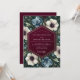 Embrace a dramatic and romantic atmosphere with this moody botanical design. A rich maroon element is set against a lush backdrop of deep greens, slate blue blossoms, and elegant white anemones. The painterly, high-contrast floral arrangement creates an artistic statement perfect for a sophisticated union.