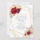 O convite para o 50.º aniversário de casamento, cor-de-rosa-reluzente e burgundy (marsala), com uma estrutura geométrica de brilho dourado concebida para ser rápida e facilmente adaptada às suas especificidades de eventos.
