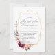 Boho burgundy red e blush cor-de-rosa sip floral e veja o convite de festas com peonias e rosas com quadro geométrico dourado personalizável para suas especificações de evento.