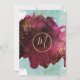 Moderno, elegante e chic marsala vermelho e arte aquarela em tons de azul-verde com respingos dourados impressos, cartões de poço de desejos. Este design clássico e sofisticado é perfeito para o casal moderno e elegante que vai se casar. Personalize com a sua mensagem na frente e um monograma personalizado no verso. Todo o design de impressão de fotos.
