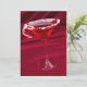 Copo de martini com borda revestida de canas de açúcar trituradas preenchido com coquetel vermelho sobre o vermelho.