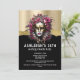 O rosto de uma bela mulher com pele branca de porcelana e lábios vermelhos rubis está vestindo uma máscara de ouro falso inspirada em fantasia que parece brilhar e brilhar. Seu cabelo longo de cinza é decorado com lindas rosas rosa e ela é colocada contra um fundo brilhante metálico preto e fino de ouro que tem modelos de texto editáveis brancos para sua redação personalizada. São ideais para uma solteira, aniversário, 16 doces; marco ou quinceanera. Simplesmente personalize os modelos de texto editáveis para se adequar à sua ocasião especial.