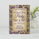 Mande aos seus convidados este Convite de festas de Mardi Gras para os vomitar. Esta bela design de ornamentado falsa ouro e máscaras de cor roxa do Mardi Gras em um fundo dourado faz o fundo perfeito para seus detalhes de festa. A parte traseira da placa tem um padrão correspondente de máscaras de mascarada púrpura em ouro. Projetado pelo artista © Tim Coffey.