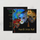 Belo Ornamentado Azul, Verde, Vermelho e Dourado, Mascarada, Mardi Gras mascaram sobre fundo preto. A cor de fundo pode ser alterada para qualquer cor que você quiser. Convites lindos para a sua comemoração Mardi Gras ou qualquer dia especial. Personalize com suas informações de evento. Mude o texto para ler Doce Dezesseis, Quinceanera, Bat Mitzvah, 90, 100º, 60º ou qualquer aniversariante que esteja fazendo uma festa.