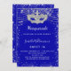 Para um Mascarada elegante, 16, 16 anos. Um fundo azul real. Decorado com pó falso prateado brilhante e uma máscara de mascarada. Personalize e adicione um nome, idade e detalhes da festa. O nome é escrito com um script de estilo manuscrito
