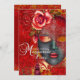 Doce 16 Convite de aniversário. Máscara floral vermelha e dourada e joias brilhantes. Por favor, note: todas as imagens planas!