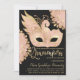 Convites Mascarada Preto, Cor-de-Rosa Dourada, Máscara Quin