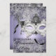 Convite de aniversário de Quinceanera, roxo e prata. Flocos de neve e máscara de joia bonito prateados. Por favor, note: todas as imagens planas!