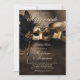 Um modelo elegante e glamouroso, preto e ouro 50º convite de aniversário, com tema mascarada, para um casal, com duas máscaras mascarada Venetianas, caligrafia elegante e um fundo escuro temperado. Observe que o ouro é um efeito digital, não uma folha de ouro real. Uma escolha encantadora para uma quinquagésima festa de aniversário em Nova Orleans, Bayou ou com um tema Mardi Gras, tema Nola, carnaval, tema mascarada.