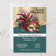 Uma bela aquarela gráfica ai com uma máscara de olho veneziana em ouro falso, vermelho-shimmer e azul lacrimogêneo que tem decorações de ornamentado e plumagem de pena, tudo colocado sobre um fundo azul-dusky que tem modelos de texto editáveis nele. Estes são ideais para um chá de panela, carnaval, circo ou festival.