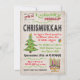 Celebração de Natal e Chanucá com este divertido convite do Chrismukkah Holiday Party. Apresenta uma árvore de natal, menorah e dreidel com tipografia divertida contra um fundo de antiguidade grungenta.