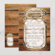 Estes convites de casamento rústicos têm um jarro de mason castanho bronzeado com um design de arco gêmeo em cima de um fundo de madeira marrom e rico em aflição. O arco gêmeo e a madeira de celeiro são apenas designs impressos. Este é um convite impresso em formato plano, com impressão a cores de cheio em ambos os lados sem custo adicional. A parte de trás do convite de casamento tem o fundo de madeira de celeiro e um pequeno pote de pedreiro no canto com a palavra "Amor" em script. Basta inserir o texto do convite de casamento nos pontos de modelo ou usar o botão "Personalizar" para mover as coisas, mudar a cor ou o estilo da fonte ou adicionar mais linhas de texto. Estes são excelentes anúncios de casamento no país para casais que vão se casar em um local de casamento do celeiro ou qualquer casamento no estilo do país que será decorado com mason jars.Cartões de mason combinando e cartões de resposta RSVP de madeira de celeiro disponíveis separadamente. Isso também seria bom para um casamento ocidental. Desconto Preços de Venda ao solicitar mais de 50 convites.