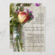 Convite à cerimônia de casamento, Foto de jarro de mason de vidro transparente com rosa vermelha e amarela e flores silvestres roxas, brancas e amarelas. Um tema adorável para um casamento vintage natural, de verão, ao ar livre. Tema do jardim selvagem de verão, com planadores de madeira leves e lavados em fundo. Todos os Designs Copyright © www.CustomInvitesOnline.com