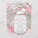 Meninas adoráveis vintage rosa mason jar com flores cor-de-rosa e convite para chás de fraldas de rendas. Este convite para chás de fraldas Mason jar é facilmente personalizado para o seu evento, adicionando os seus detalhes no estilo de letra e cor, e o texto da sua escolha.