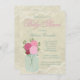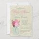 Adorável jarro de pedreiro com flores cor-de-rosa, convite para chá de fraldas de rendas de marfim. Este doce convite de chá de fraldas jar mason é facilmente personalizado para o seu evento, adicionando os seus detalhes no estilo de letra e cor, bem como o texto da sua escolha.