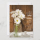 Convide convidados para a sua próxima festa de dia-a-dia sobre a música russa com o encantador Convite de aniversário Mason Jar e White Daisies Country. Personalize-o com o nome pessoal da aniversariante e detalhes específicos da festa. Esta festa casual, porém clássica, de floricultura personalizada, a cada dia, apresenta uma fotografia floral quintal melhorada digitalmente de um pote de conservas de vidro cheio de flores margaridas brancas e de um fundo de madeira de celeiro de castanho e de couro. Perfeito para um tema de fazenda rural rural, celeiro rústico, rancho ou festa de aniversário ocidental.