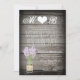 Cinza de Convite para Casamento de Madeira, Modelo de de Casamento de Madeira, com flores de lavanda roxas, num jarro de mason embrulhado com rendas com noiva e noções de noivo com coração no topo. Estes convites únicos para casamento no campo são perfeitos para qualquer casamento temático rústico. As iniciais do casal e o coração encontram-se também no verso do convite para a design de madeira de cinza rusticada. mason jar, canning jar, mason jar and lace, rustic wood, rustic wood, country, country, angustiado, antigo, antigo, antigo, vintage, casamento de celeiro, convites para casamento de madeira de celeiro, lavanda roxa, iniciais, convites para casamento de flores roxas, convites para mason jar de cinzas