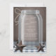 Incrivelmente belos convites para casamentos inspirados no sul do país apresentando uma ilustração de um jarro de mason com fio amarrado ao redor dele, estrelas rústicas do Texas deitadas no pé do pote, um topo de mesa de gingham branco e azul, sobre um fundo castanho vintage. A parte traseira desses convites oferece a opção de imprimir também o tempo de recepção e o local.