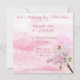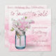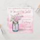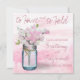 Convite para Casamento de Jardins - Vintage blue mason jar amarrado com um fio de juta e um buquê de flores de ervilha doces em tons pastéis de creme e rosa colocados em frente a um derrame de aquarela rosa pintado de fundo. © 2015 Cores d'água originais por WhimsicalArtwork™ Perfect para o casamento ou a festa de vintage daquele país.