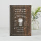 Um convite de casamento rústico com uma ilustração no centro de um jarro mason de hálito de bebê. O fundo é inspirado em lenha. Personalize o texto.