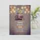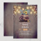 Luzes de jarro de pedreiro, barril de madeira velho, girassóis amarelos... este é o convite mais bonito para o seu último verão, chá de fraldas de outono