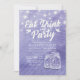 EAT Drink & Party / EAT Drink e Be Casried Celebration / Modelos de Cartões de Chá de panela - Elegante Lettering Script e Vintage Casal Mason Jars e String Lights on Purple Violet Color Background. Um Design perfeito para o seu grande dia. Todo estilo de texto, cores, tamanhos podem ser modificados para ajustado das suas necessidades!