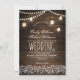 Carros de pedreiro russos com luzes de cordas Lenha castanha de fundo renda de renda convite para o verão, outono, primavera ou casamento no inverno! Design perfeito para o casamento do campo com luzes de jarros de mason e cordas de luzes decor. Entre em contato comigo para obter suporte na personalização do design. Produtos correspondentes disponíveis