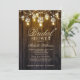 Luzes de cordas russas e jarro de pedras com flores de hálito de bebê em um cartão de chá de panela monograma elegante para o verão, outono, primavera ou casamento no inverno! Design perfeito para o país/casamento moderno