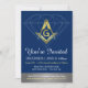 Aqui estão alguns convites clássicos, azuis e dourados masônicos para o seu evento especial Diamond Lodge. Esse modelo de convite de freemason é projetado com um quadrado de ouro e símbolo de bússola de alvenaria e uma forma elegante de um diamante no fundo. Adicione um toque de classe à sua instalação anual de oficiais ou outro evento especial com estes modelos de convite personalizados! Este modelo de cartão mônico pode ser totalmente personalizado com o seu próprio texto e apagando ou movendo-se ao redor de qualquer um dos elementos gráficos. Categoria: modelo de convite freemasonry, cartões personalizados para freemasons. Cores: azul marinho e ouro metálico.