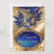Convites Masquerade birthday Party Gold Blue Mask Feathers