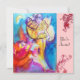 Músicos coloridos, caprichosos e artísticos do carnaval sob a luz da lua, pintura em aquarela com cores vibrantes em vermelho, rosa, fúcsia, azul e amarelo. Personagens inspirados na Commedia dell'Arte e no Carnaval de Veneza e máscaras de penas venezianas.