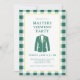 Um convite sofisticado para uma festa de visualização do Masters inspirado no estilo atemporal do torneio mais icônico do golfe. Este design apresenta um fundo branco crocante emoldurado por uma borda xadrez verde clássica e uma fina linha de acento amarelo que faz uma referência sutil à tradição do casaco verde. O motivo do casaco ilustrado e a tipografia elegante criam um layout limpo e equilibrado que se sente ao mesmo tempo clássico e moderno. O verso continua o design com um padrão xadrez verde coordenado que adiciona interesse visual, mantendo o visual geral polido e discreto. Ideal para hospedar uma festa de observação do Masters, reunião de clube de golfe ou celebração de golfe de primavera, este convite pode ser personalizado com os detalhes do seu evento, localização e informações de RSVP para uma maneira atenciosa e elegante de convidar outros fãs de golfe.