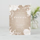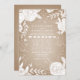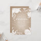 Um convite de casamento floral com uma fronteira de flores brancas, folhas e o hálito do bebê. O plano de fundo é inspirado no estoque de papelão. Personalize o texto.