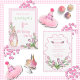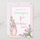 Beatrix Potter cor-de-rosa-branca com convite de festas de fonte rosa para coordenação com tulipas e rosas de cor-de-água. Quadro doce de xadrez rosa e branca. Perfeito para a festa mais doce do coelho primeiro/primeiro aniversario. Festa de aniversário de menina.